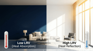 - The Visual Hack: Lighter colors (High LRV) reduce the need for artificial cooling by reflecting heat.